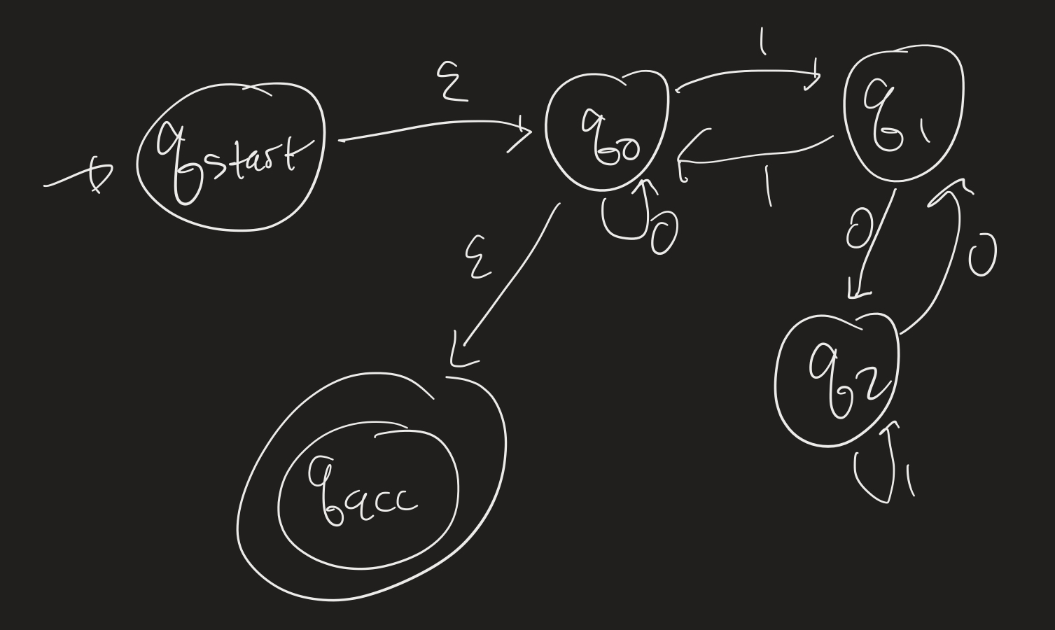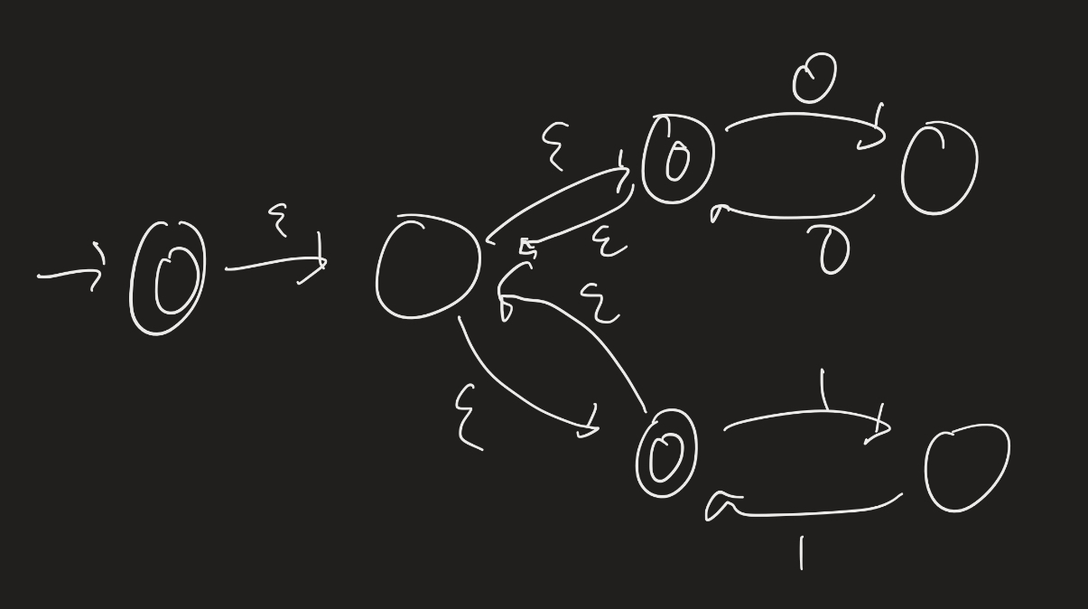 - Fill in the details for the proof, mentioned in lecture, that the class of regular languages is closed under the Kleene star operation. That is: Let $M = (Q, \Sigma, \delta, q_0, F)$ be a DFA. Find an NFA $N$ which accepts $\mathcal{L}(M)^*$.